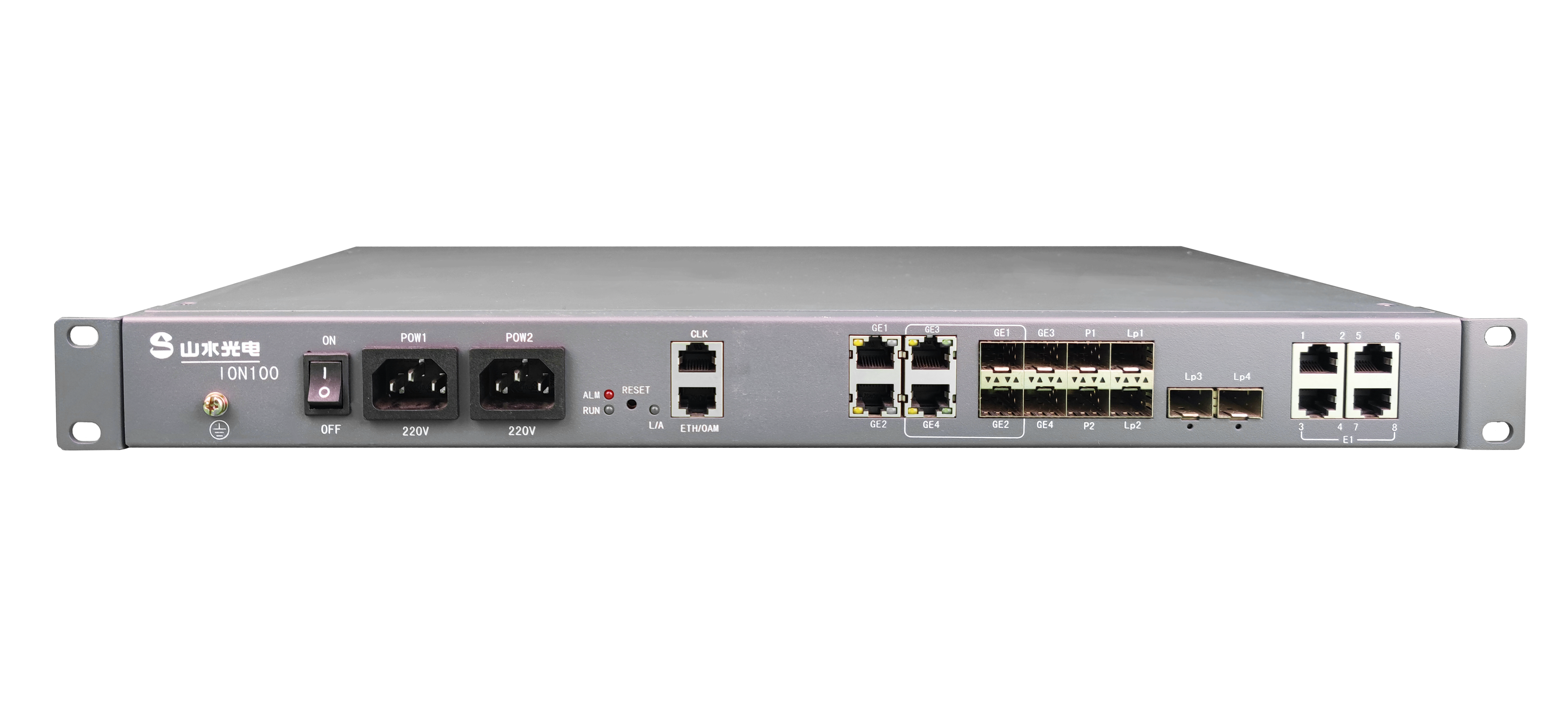 山水光电ION100基于分组交换和 OTN 技术,产品定位于OTN汇聚网络的接入层,具备 E1、FE、GE、10GE LAN、STM-1、STM-4 等多种业务接入,能够实现对接入业务的汇聚、整合和疏导;设备具有配置简单、适合各种大小带宽业务、端到端的组网、及电信级保护的能力,支持被第三方网管平台配置/管理,为用户构建智能、高效、可靠、灵活、易维的网络。